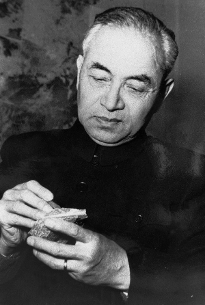李四光同志是一面旗帜……在科研工作中做出了卓越成就,对社会主义建设作出了很大的贡献,你们要学习他。——周恩来