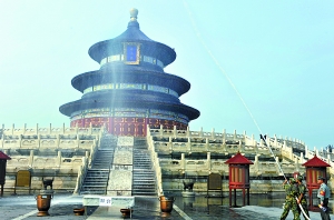 昨天下午,在市游园指挥部和市公安局国庆游园活动保卫指挥部的统一组织下,崇文区政府、崇文区游园安保分指挥部在天坛公园展开了历时50分钟的可疑物排查、“大人流”疏控、灭火救援等突发事件处置演练。