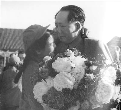 这位女文工团员给毛泽东献上鲜花、握手后,突然扑到毛泽东怀里,紧紧拥抱着,情不自禁地泪流满面。那一刻,在场的所有人全愣住了。被打动的毛泽东闭上眼睛,旁边的吕厚民立即反应过来,按动快门,把这一感人的场面拍了下来。