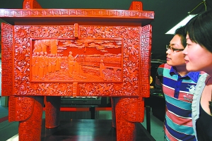 由雕漆工艺完成的鼎盛中华造型以司母戊鼎为原型,重达300多斤。制作时先经过半年时间刷上240多层漆,再在1.2厘米厚度的漆面上进行手工雕刻。其正面以油画“开国大典”为内容,背面题为“中华赋”及长城图案。象牙作品以长两米、重320斤的百年“老”象牙材料为基,以56个民族载歌载舞为主题,背景是30处世界文化遗产。象牙、雕漆、玉器和景泰蓝被誉为工艺美术界的“四大名旦”,另外两项巨作景泰蓝“太平有象”和玉雕“九龙浴佛”也将陆续亮相。 (记者耿诺)