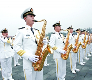 解放军联合军乐团,是整个国庆阅兵游行队伍中,唯一的静态表演方阵,也是唯一参加游行全部过程的方阵。方阵的近4000名成员,将伫立广场4个多小时,使阅兵游行时激昂的乐声贯穿始终。