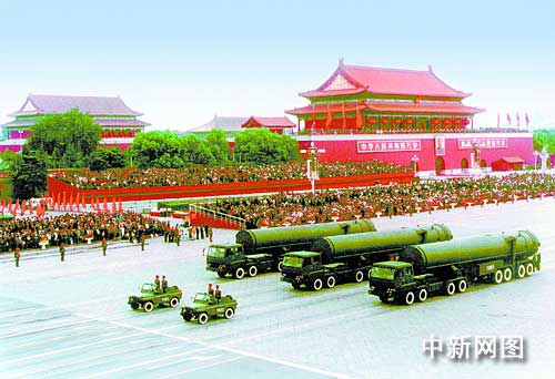 记者三十日从中国航天科技集团公司获悉,由该集团公司自主研发的五种共一百五十二套高科技导弹武器装备,遍布解放军陆、海、空和二炮各军兵种即将在北京天安门广场接受检阅的装备方队,其研制的多种战略、战术导弹将悉数登场受阅,其中体现战略威慑核心力量的新型战略核导弹更是气势磅礴,将充分展示出中国的国防实力和维护国家主权、安全和领土完整的能力。