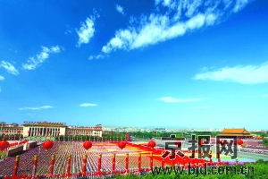 不经历风雨怎能见彩虹!似乎是对伟大祖国60年来走过的不平凡道路的真实写照,庆典前的天安门广场在经历电闪雷鸣后终于拨云见日,迎来湛蓝的天空和灿烂的阳光。今天上午10时,广场上空天高云淡,日朗风清,庆典典礼在良好的天气条件下隆重举行。