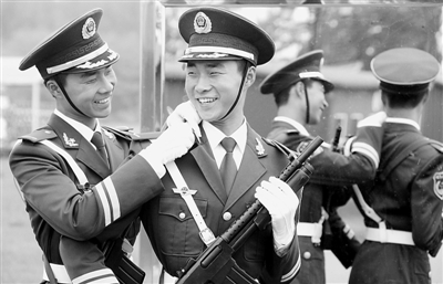 这个方队60%是拥有双学士学位的国防生,大多毕业于名牌大学。刚进阅兵村时,他们坦言:选择受阅,或为开阔眼界,或为积累资本,或为分配个理想单位,等等。“方队要走得齐,首先人员的思想要齐;强化当代革命军人核心价值观,才能提升学员的精气神。”方队政委赵建雄对“症”开“方”。