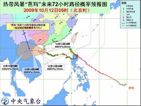受“芭玛”和冷空气的共同影响,10日至12日,东海南部、台湾海峡、台湾以东洋面、巴士海峡、巴林塘海峡、南海中北部、北部湾、琼州海峡、海南、广东沿海、福建中南部沿海、台湾沿海先后出现6~8级风,部分海域和地区阵风9~10级。