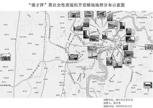2000年开始,谢才萍利用自己特殊的家庭背景和社会关系,在渝中区四处开设赌场,聚众赌博。