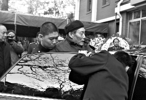 昨日下午,他缓步来到灵堂,难抑悲痛心情,不时掏手绢擦眼泪。耿老说,他就居住在与钱老家相邻的单元内。
