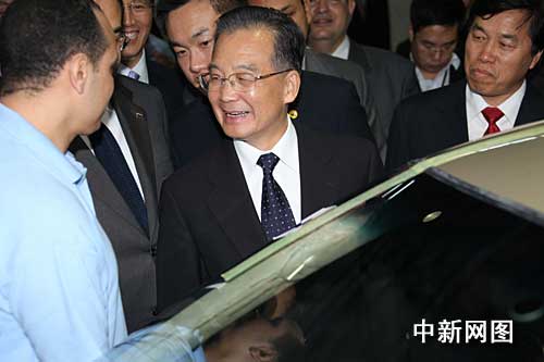 中新网11月7日电 当地时间六日下午,刚刚抵达埃及首都开罗的中国总理温家宝来到华晨汽车埃及工厂参观。温家宝将对埃及进行正式访问并出席中非合作论坛第四届部长级会议开幕式。
