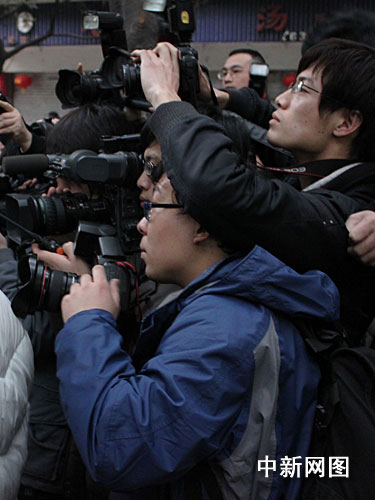从早上7点开始,来自境内外的各路记者便已经在警戒颇严的重庆市第五中级人民法院门口守候,一些摄影爱好者也加入拍摄的队伍,在很长一段时间里,在法庭外守候的记者多过围观的市民。记者看到,尽管法庭临时增设加座,但也并非所有到场媒体能够进去旁听,不少没有拿到旁听证的媒体记者仍然早早的来到法院门口,希望能采访到现场新闻和更快的得到一些消息。