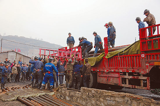 在救援现场记者看到,大批抢险物资已经运抵煤矿风井口等待投入使用,抢险队员正紧张地从车上卸下水泵、管道、电缆等设施并进行安装,40多名医护人员和20多辆救护车现场待命,指挥部工作人员一次又一次论证救援方案、修正正在实施的救援措施。