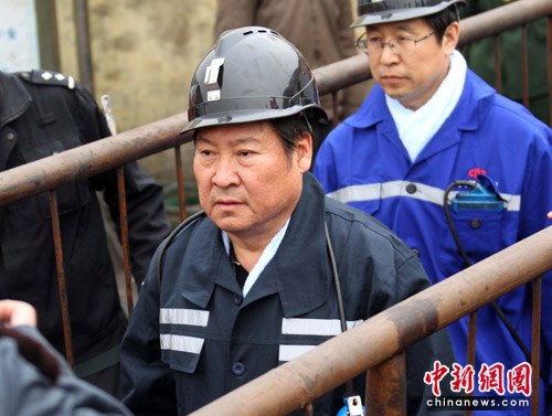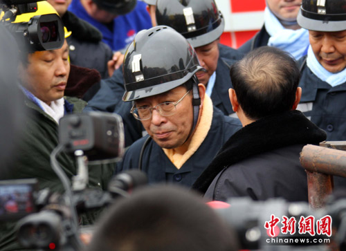 中新网河津3月31日电(张云)王家岭矿透水事故抢险进入第四天,救援抢险仍在紧张进行。31日中午,国家安监总局局长骆林,安全监管总局副局长、国家煤矿安监局局长赵铁锤,山西省长王君下井视察抢险进度。