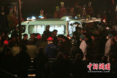 中新社王家岭4月5日电(记者 张雷杰 张云)今日凌晨,山西王家岭煤矿3.28透水事故救援第一批幸存者9人成功升井,并被送往医院急救。