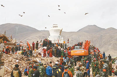 玉树县城整个儿被毁掉了。