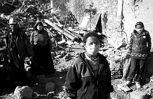 妈妈起床去倒塌的家里挖东西了,江永卓玛叫醒了弟弟妹妹,开始了新的一天。