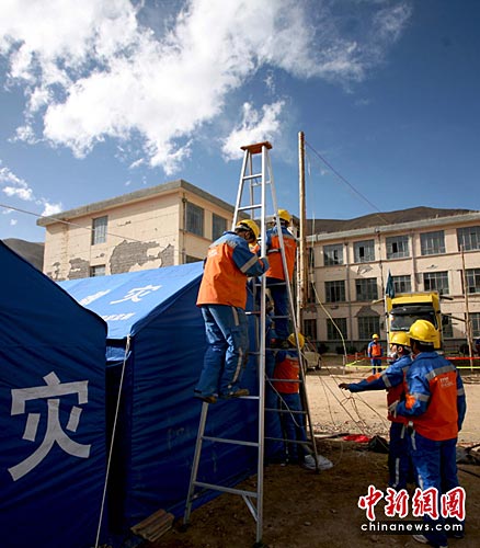 中新网青海玉树4月21日电(夏江 记者刘忠俊)今晚,我终于可以看书学习了!红旗小学6岁的青梅拉措拉着妈妈的手高兴地说。青海玉树4.14地震发生以来,玉树州最大的小学红旗小学就停止了供电,经过四川省电力公司抗震救灾抢险队员的努力,玉树红旗小学全面恢复供电。
