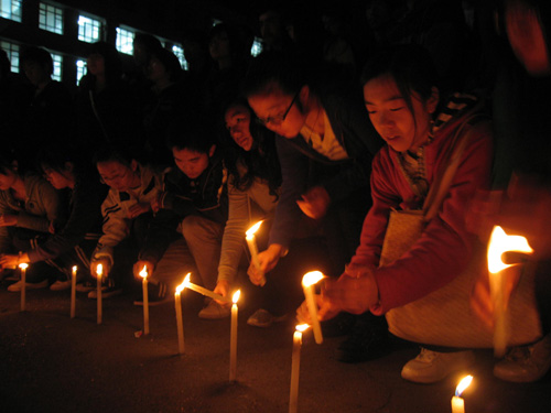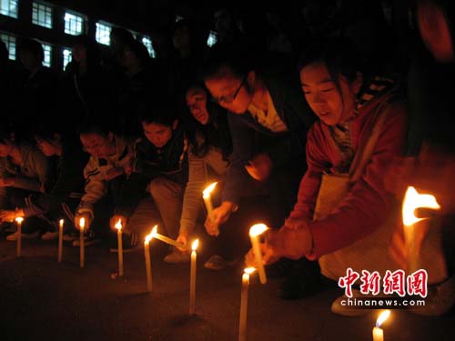 中新网乌鲁木齐4月22日电(冀江彤)21号晚间10时,新疆大学近3000名学子,点燃烛光,俯首致哀,表达对玉树地震遇难者的哀思。活动结束后,仍有许多学生手捧烛光,不愿离去,为玉树人民祈福加油。