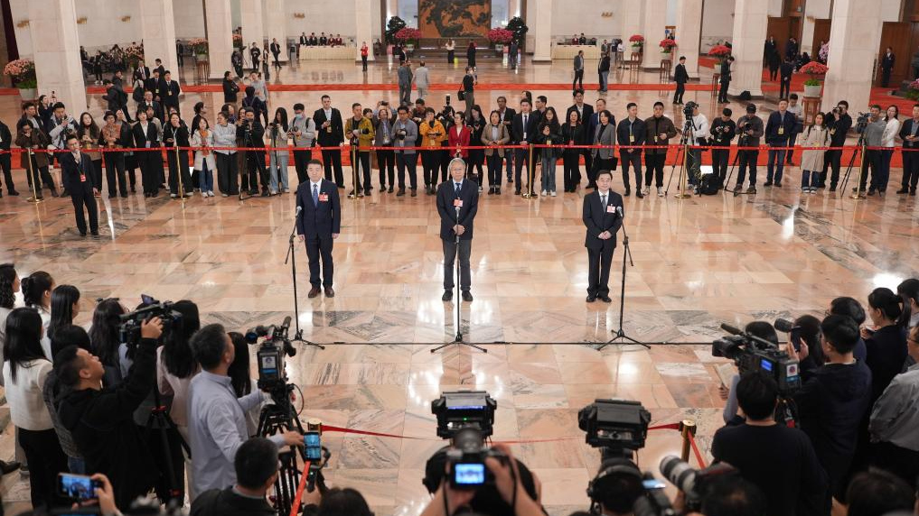 3月11日下午闭幕会后,在人民大会堂北大厅举行十四届全国人大三次会议第三场“部长通道”集中采访活动,邀请部分列席会议的国务院有关部委主要负责人接受采访。