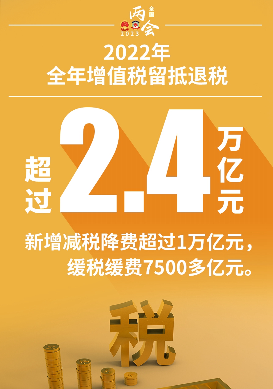 受疫情等因素冲击,不少企业和个体工商户遇到特殊困难。全年增值税留抵退税超过2.4万亿元,新增减税降费超过1万亿元,缓税缓费7500多亿元。为有力支持减税降费政策落实,中央对地方转移支付大幅增加。引导金融机构增加信贷投放,降低融资成本,新发放企业贷款平均利率降至有统计以来最低水平,对普惠小微贷款阶段性减息。用改革办法激发市场活力。量大面广的中小微企业和个体工商户普遍受益。