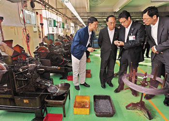 曾荫权12日与香港5大商会代表举行早餐会,听取他们对企业方面的意见,下午即前往东莞实地考察当地港商的情况。他在东莞市长李毓全的陪同下,先到东莞凤岗镇一间五金制品厂参观,该港资企业于1977年成立,聘有千多名员工,接着与约20名珠三角港资企业代表举行座谈会,进一步了解他们现时面对的营运困难。返回香港后,他于傍晚举行记者会。