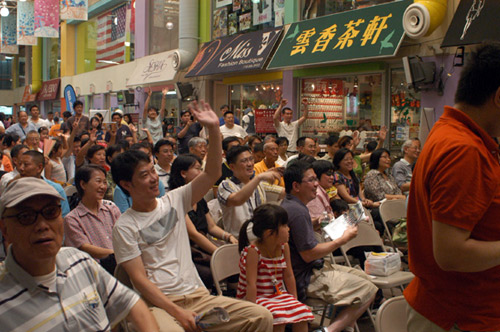 当天下午一时许,法拉盛购物中心的大堂内已经聚集了数百位华人球迷,座无虚席,二楼的走廊上也站了不少观众,其中以男性观众为主,也有妇女和儿童。某广告公司在这里主办了民众一起看世界杯的活动,邀请了李昌林、谭琳等华文媒体的专业主持人在现场解说,观众还可以参加抽奖,大奖是纽约至上海的往返机票。现场的舞台上树起了大屏幕,会场周围还有数台小电视机。随着比赛的开始,进入会场观战的人越来越多。在加时赛的第26分钟,西班牙攻入唯一一球,引起了全场的沸腾。据主办方介绍,当天来现场的观众多达千人,而前一天半决赛的观众也有700余人。