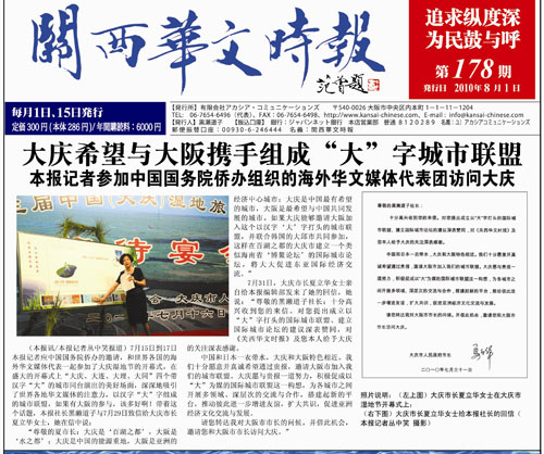 中新网8月3日电 据日本《关西华文时报》报道,该报社社长黑濑道子7月29日致信中国大庆市长夏立华女士,建议大庆组织成立“大”字打头的国际城市联盟。信函如下: