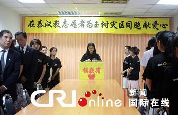 4月20日,在泰国的汉语教师志愿者代表在曼谷举行仪式,深切哀悼青海玉树地震遇难者,并捐款为灾区同胞献爱心。国家汉办驻泰国代表庞利、泰国教育部代表、驻泰汉语教师志愿者代表、孔子学院院长等50多人出席了悼念仪式。