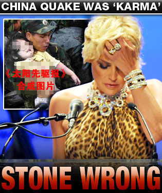 澳洲《太阳先驱报》PS了一张莎朗·斯通道歉的图片。
