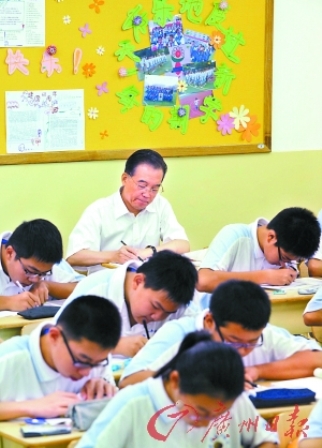 “温总理与学生一起上课”图片中只有总理坐姿端正引热议