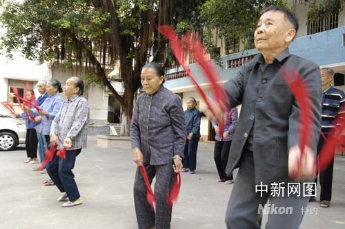 广东三水芦苞福利园老人在跳健身舞。作者 蔡剑