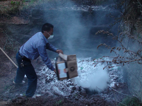 仙海区区狂犬病指挥中心得到消息后引起高度重视,迅速联系区畜牧兽医站和区疾病预防控制中心的有关技术人员赶往现场。全区同时启动应急预案,派出干警、治安联防人员组成打狗队前往协助,经对被咬伤的牛和家犬现象观察认定,不明来历的犬只极可能是疯狗(狂犬),于是立即将被咬伤的人员送往区人民医院进行消毒和疫苗注射。在打狗应急分队的统一部署下,组织百余名群众捕杀被咬伤的耕牛和狂犬及临近家犬。