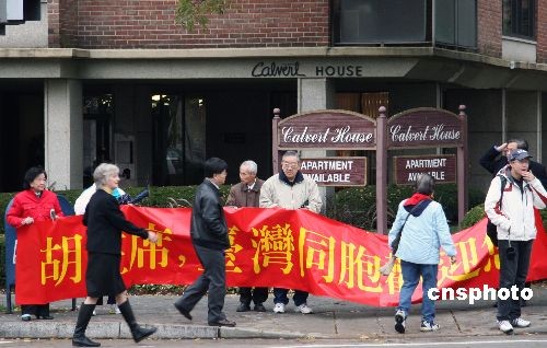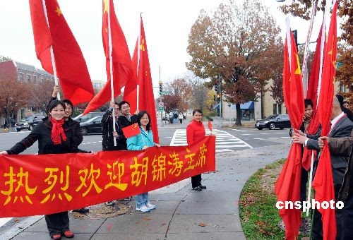 华盛顿华侨华人留学生迎接胡锦涛主席