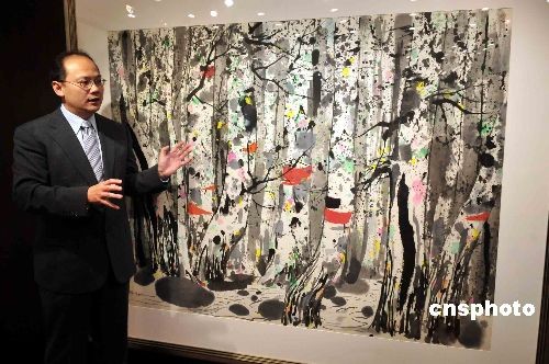 图为预料成交价超过四百万港元吴冠中名作《白桦林》。中新社发 谭达明 摄