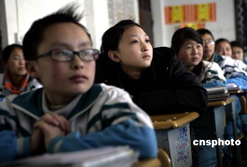3月13日,借校于拉萨第三小学的拉萨二中学生正在专心听课,同学们已经从去年“3.14”事件的阴影中走出。去年“3.14”打砸抢烧事件时拉萨二中被暴徒严重冲击,初一初二的两所教学楼被全部烧毁。现在借校于拉萨第三小学上课的共有7个班级300多名学生。中新社发 刘震 摄