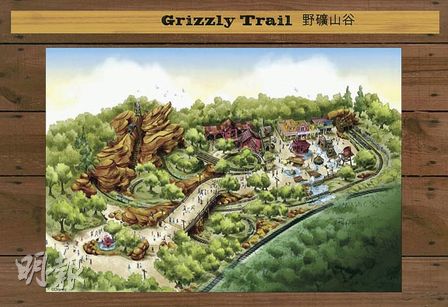 主题园区的故事设定于偏远淘金小镇,但大灰熊却因淘金被触怒。一班寻金者乘“大野矿山飞车”横越整个小镇,但飞车在崎岖斜坡上突然急速倒驶,一群实物原大的发声机动大灰熊也会施袭搞破坏,弄得乘客东歪西倒,最后更会触动炸药装置,令飞车从山中高速“喷射”出来。“大野矿山飞车”相信是这次扩建中,刺激度最高的一个设施。