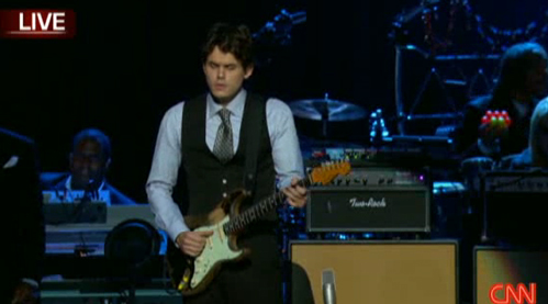 中新网7月8日电 CNN消息,美国知名歌手约翰.梅约在杰克逊追思会上献唱,并在演唱后下台后与杰克逊家人拥抱。