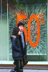 面对节节下降的销售数字,商家惟有抓住一个个节日商机。上个双休日,商家围绕元宵节展开的促销活动延续了春节时的热闹,而本周,针对情人节的促销活动又呼之欲出。比如,第一八佰伴将推出 “满399送199”的活动;第六百货可能推出“满200送200”的促销;新世界城将在“冬令商品3折起、春季新品8折起”的基础上再推出 “购物满额分级送礼”的活动,以双人份的五星级酒店入住券、自助餐券、电影票、蜡像馆门票来吸引顾客多多埋单;太平洋百货的“冬装最后出清”活动则推出了“少女装出清3折起,第二件再享8折”的优惠……
