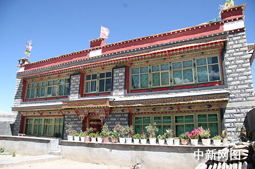 参加第三届全国重点网络媒体西藏行的记者们14日走访了江孜县东郊村。该村农户主要以奶牛养殖为主,并进行奶渣的加工生产。图为该村具有浓郁民族风情的民居。