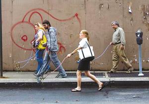 纽约街头出现一帮人,牵着空狗链散步,他们互相逗弄对方的“隐形狗”,甚至捡拾“不存在的便便”。