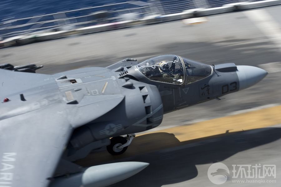 在此次美菲联合登陆演习中,一架AV-8B鹞式战斗机从好人理查德号两栖攻击舰上起飞。