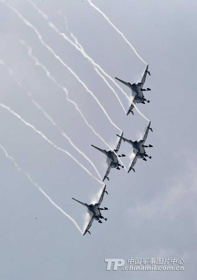 4机斜斤斗。解放军报记者 乔天富 摄