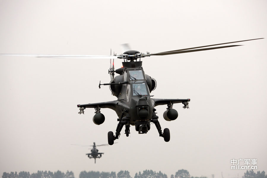 雷霆出击。11月7日,广州军区某陆航旅飞行员驾驶我国产某新型武装直升机进行训练。特约记者 李三红 摄影