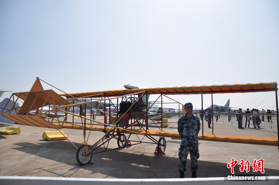 冯如2号飞机是中国人自行设计、制造并成功试飞的第一架飞机。该机于1911年1月18日由“中国航空之父”--冯如试飞成功。航展上展出的为1:1复制品。陈海峰 摄