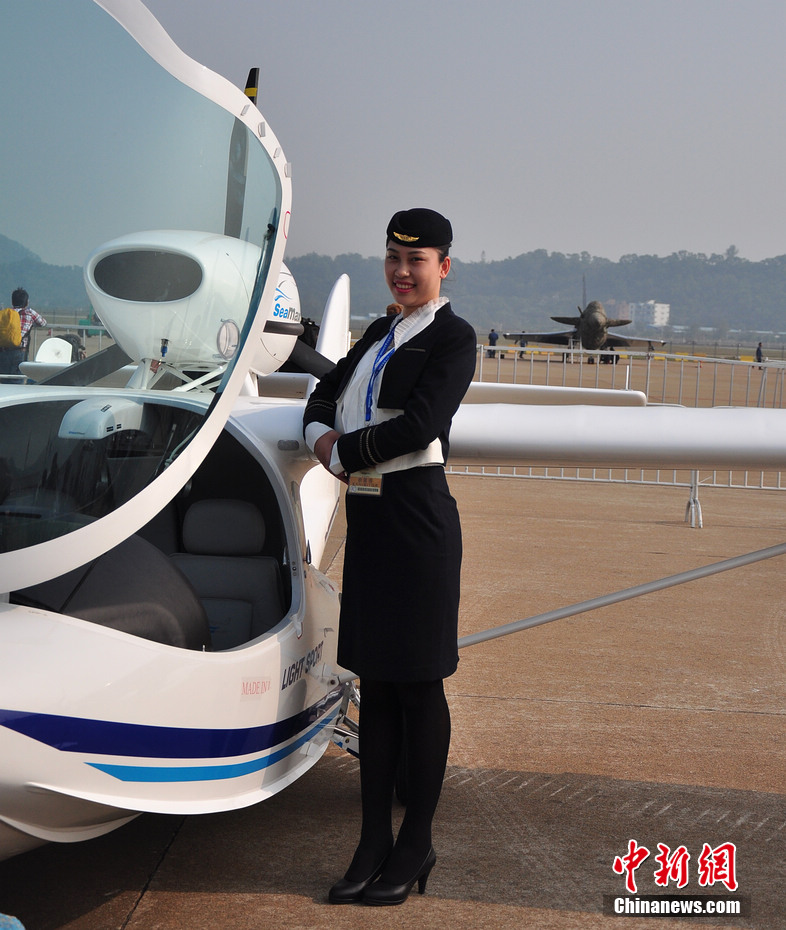 每一届珠海航展都会有许多佳丽现身,而这次航展上的直升机模特更是让观众大饱眼福。陈海峰 摄