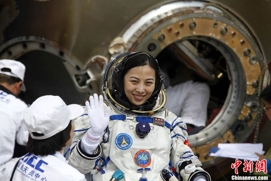 6月26日上午,内蒙古中部草原“神十”任务主着陆场,“神十”载人飞船返回舱顺利着陆,中国首位“太空老师”、“神十”任务女航天员王亚平健康出舱。孙自法 摄