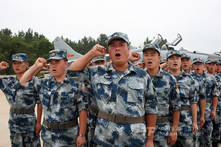 空军战斗群21名地转人员出征前宣誓。 曹占礼 摄