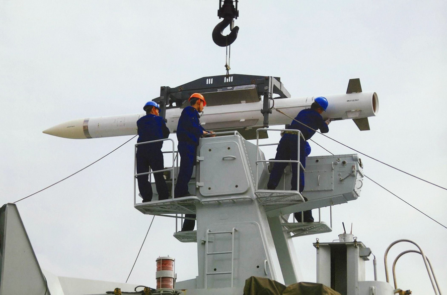“施基利”是一种全天候多通道的舰载中程防空导弹武器系统,可以担负舰艇和编队的防空作战任务,主要拦截目标是轰炸机,歼击轰炸机,攻击机,直升机和各类反舰导弹。