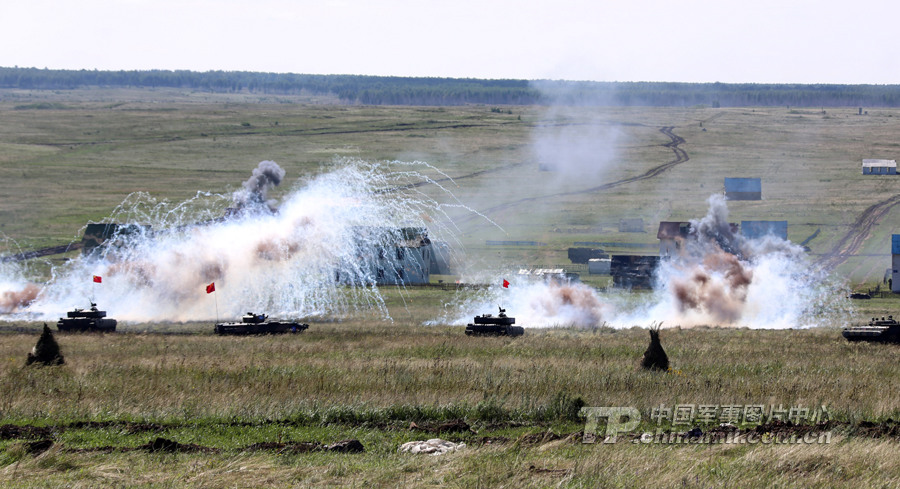解放军重炮群齐射火力掩护中俄参演部队