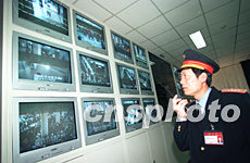 一月十七日,今年春运正式启动。北京站工作人员正在监控室通过数字化电视监控系统密切注视站内情况,以保障春运安全有序。作者:张勤