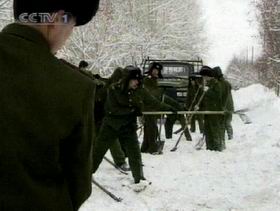 据参与营救工作的阿勒泰公路总段人士说,严重受阻的六条国省道路有二百多公里,包括国道二一六线、二一七线。该段共组成六支抢险队奔赴雪阻现场,投入抢险机械二百多台,清理积雪八十五万立方米,仅堆在路基旁的积雪就达两米高。目前仍有部分路段需要不断清除雪阻以保证路面正常通行。