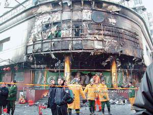 2003年2月2日下午,哈尔滨道外区天潭酒店发生特大火灾,造成33人死亡。事故原因日前初步认定:直接原因为酒店员工违规操作,明火向煤油炉内注油引发燃爆。目前,该酒店的法人代表及经营者已被刑事拘留,有关部门已冻结其账户和财产。